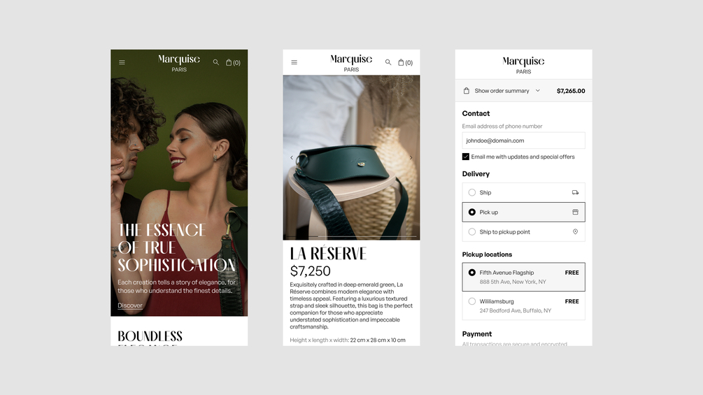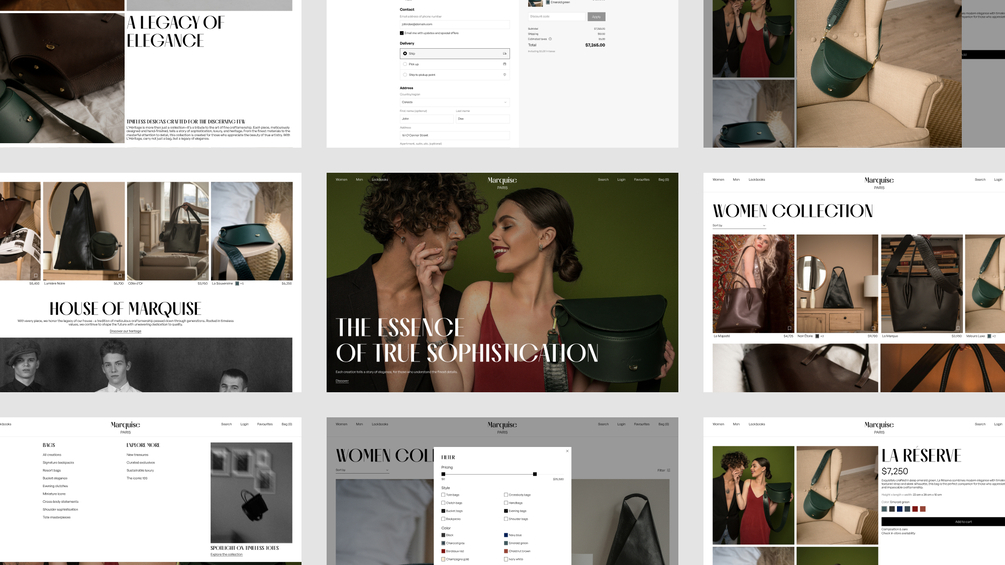 • Clean, luxury-inspired aesthetic with large visuals and refined typography